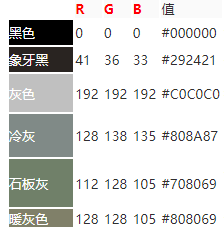 举个例子,我们经常用到的Photoshop里关于颜色的RGB表示法就属于一种非典型的embedding。在这里颜色被拆成三个特征纬度,R(红色强度,取值范围0-255),G(绿色强度,取值范围0-255),B(蓝色强度,取值范围0-255)。RGB(0,0,0)就是黑色。RGB(41,36,33)就是象牙黑。通过这样的方法,我们可以通过数字来描述颜色。