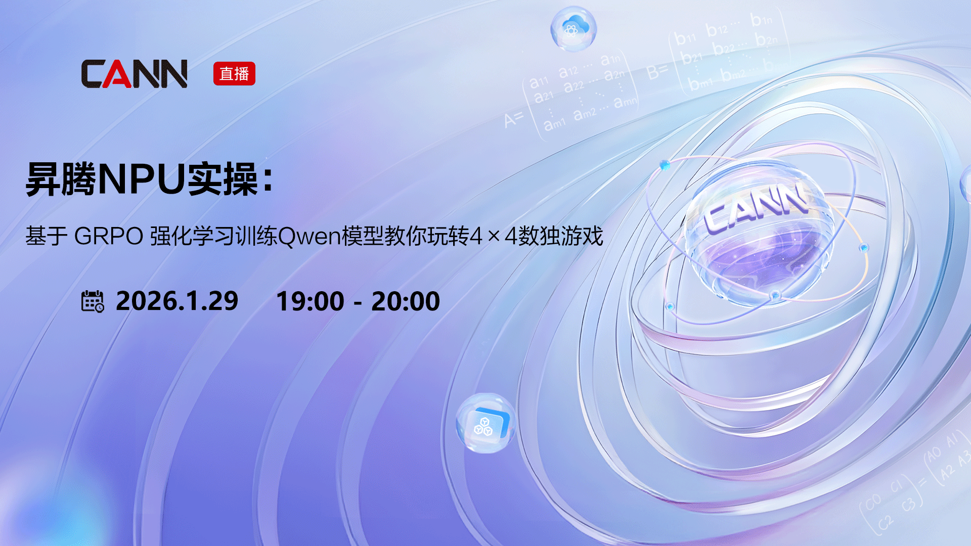 本次直播聚焦GRPO原理拆解如对⽐PPO的⽆偏优势估计、KL散度约束优化等,并且会详细讲述4×4数独训练中格式、问题保持、规则遵守等奖励函数的设计逻辑,以及GRPO训练过程中的关键参数调优思路以及其影响。同时演⽰基于SwanLab实时观测训练曲线,分享如何通过参数调整将 Qwen2.5-7B数独答案准确度从41.6%提升⾄89.6%。全程⼲货,⼿把⼿教你落地昇腾NPU⼤模型强化学习训练