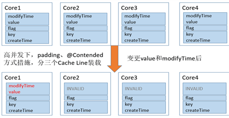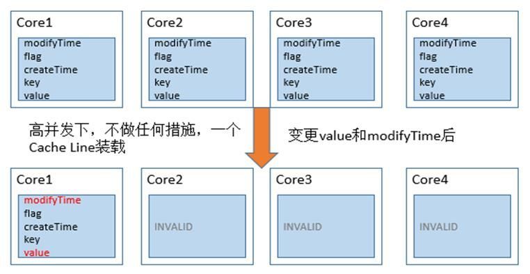 - 对同一对象/结构体的多个属性,可能存在于同一缓存行中,导致伪共享问题,需为属性的不变与常变,变化的独立与关联而隔离设计,及缓存行对齐,解决多线程高并发环境下缓存失效、彼此牵制问题;
