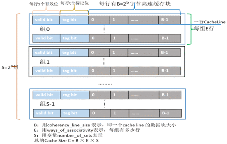 Cache分成多个组,每组分成多个Cache Line行,大致如下图: