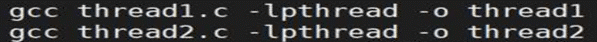 Thread1.c 中的红色字体行,打开注释即为 thread2.c