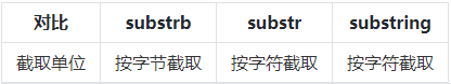 substrb按字节截取,substr/substring按字符截取。以utf8编码为例,1个汉字占3个字节,当使用substrb截取长度3的子串时,只能截取到一个字符,而substr/substring可以截取到三个字符。