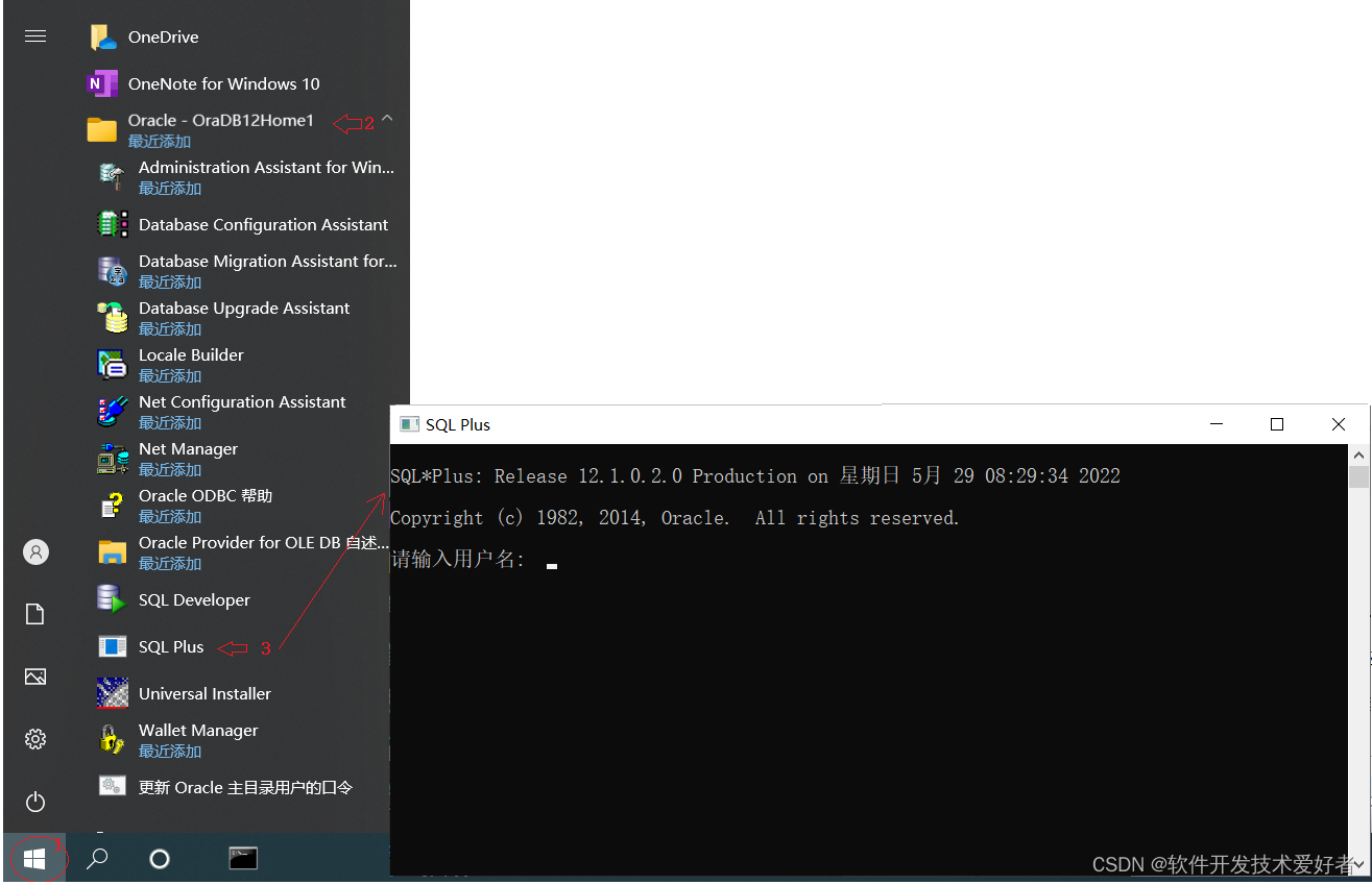 在Windows系统中,启动SQL plus工具,有两种方式: