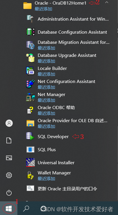 (在Windows的【开始】菜单中依次选择“所有应用 → Oracle - OraDB12Home1 → SQL Developer”命令项)