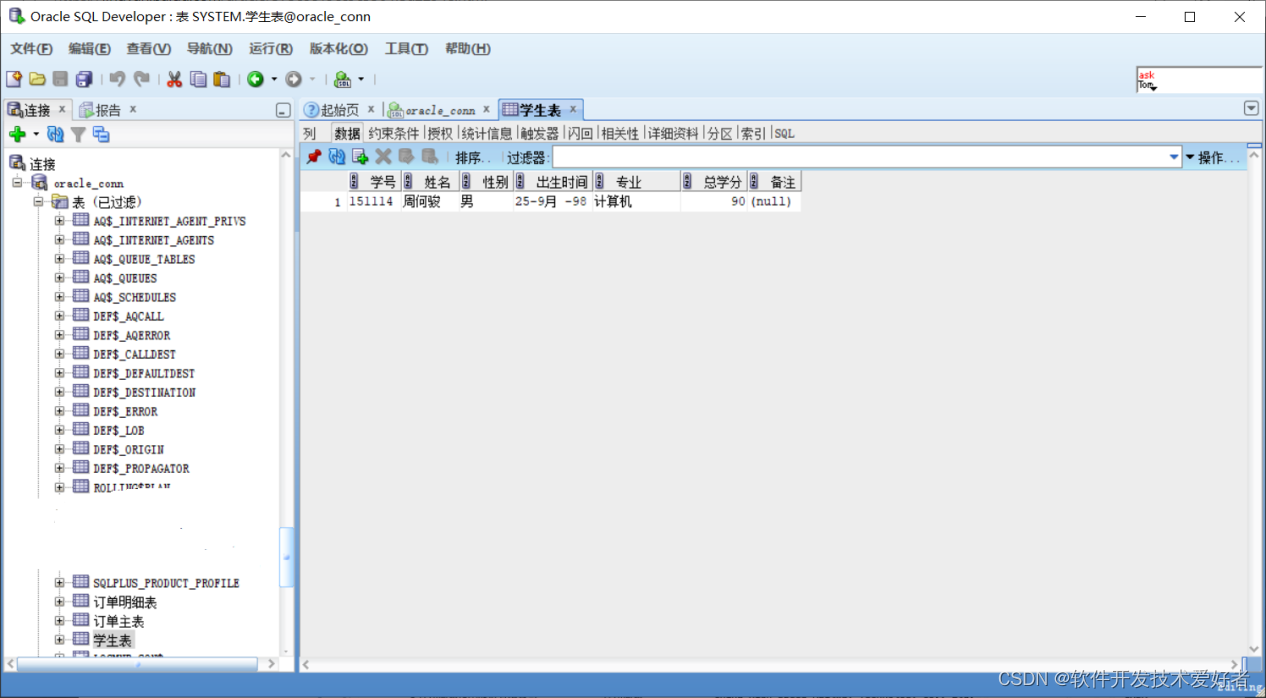 创建的连接“oracal_conn”出现在【Oracle SQL Developer】窗口左侧窗格中