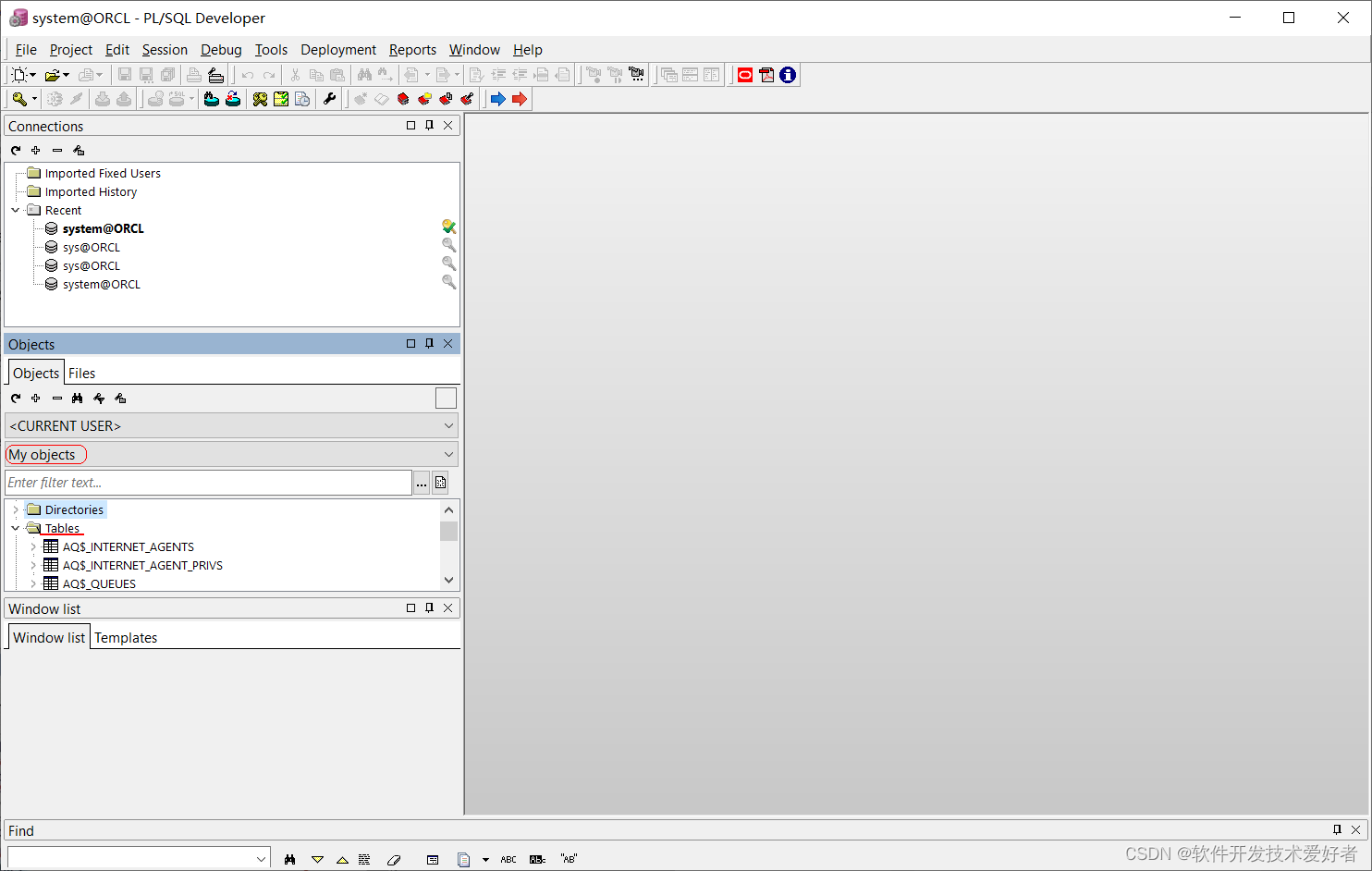 直接点击Cancel(取消)按钮,也能进入PLSQL Developer主界面: