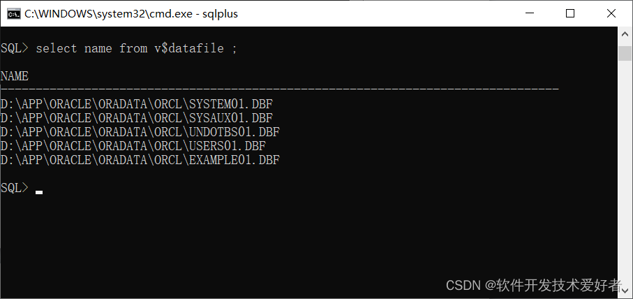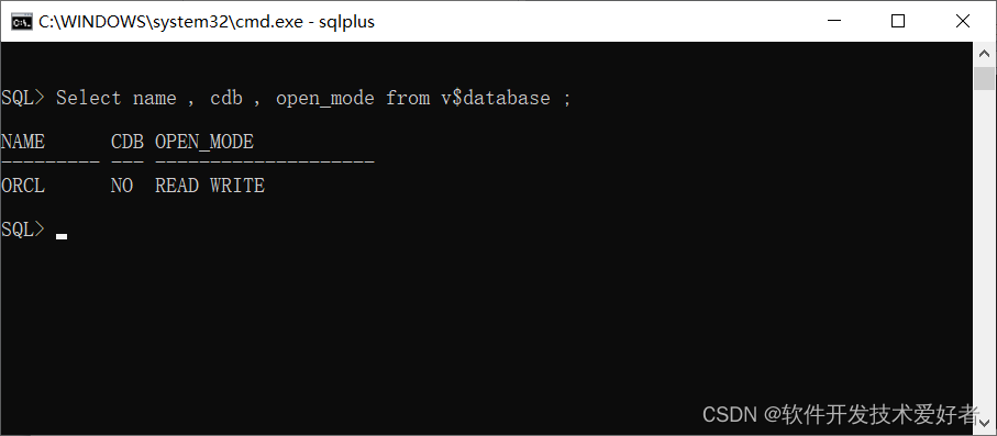 查看数据库的当前状态, 在命令提示符“SQL>”后输入以下命令,用英语分号(;)结束: