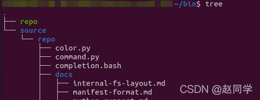 6、在bin目录下创建source目录,然后将整个git-repo目录拷贝到source目录下,并将git-repo文件夹命名为repo,然后保证你的bin目录是以下结构