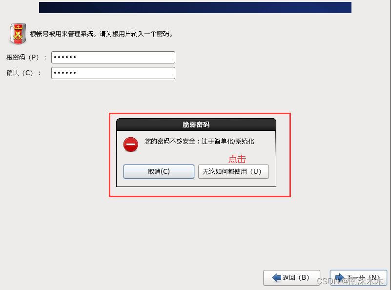 (25) 设置好密码后,可能会弹出密码不够安全窗口,点击无论如何都要使用,下一步。