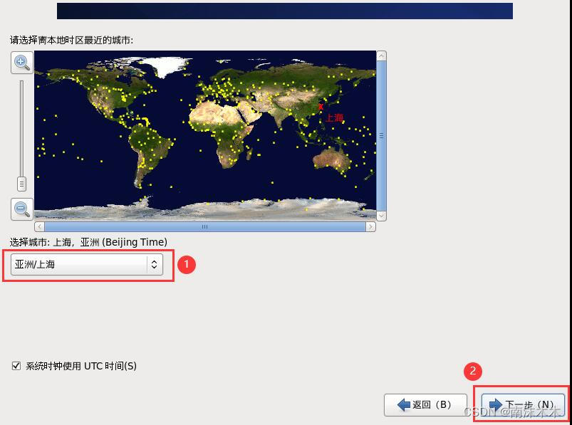 (23) 设置时区,勾选使用UTC时间,选择亚洲/上海,下一步。