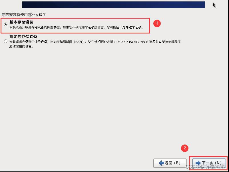(18) 选择存储设备,基本存储设备即可,下一步。