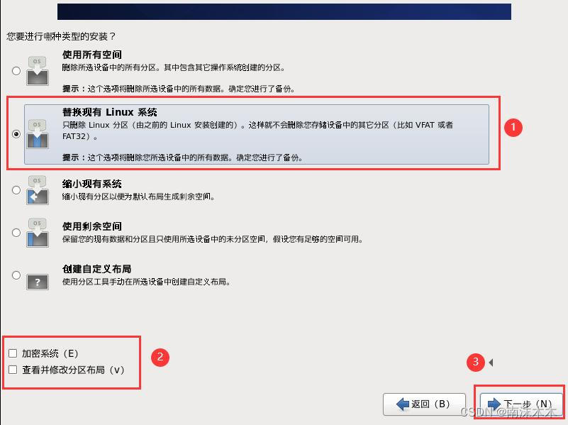(26) 选择替换现有Linux系统,下一步。然后会出现一个窗口,点击将修改写入磁盘,此处忘记截图了。
