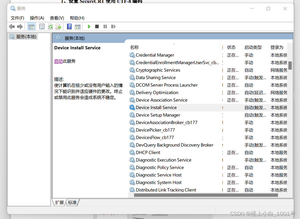 2、按下win+R,输入services.msc,回车打开服务窗口,找到device install service服务并启动此服务。