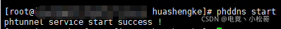 phddns start(启动)| status(状态)| stop(停止)|restart(重启)| reset(重置)|enable(开机自启动)|disable(关闭开机自启动)|version(版本),这里我演示启动: