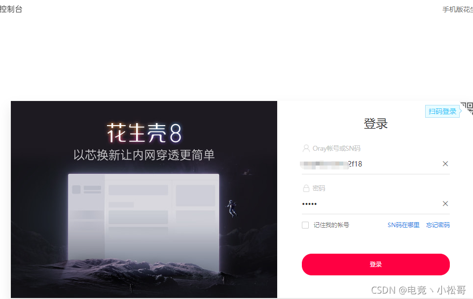 浏览器访问http://b.oray.com ,输入Linux 5.1在安装产生SN码与默认登录密码admin