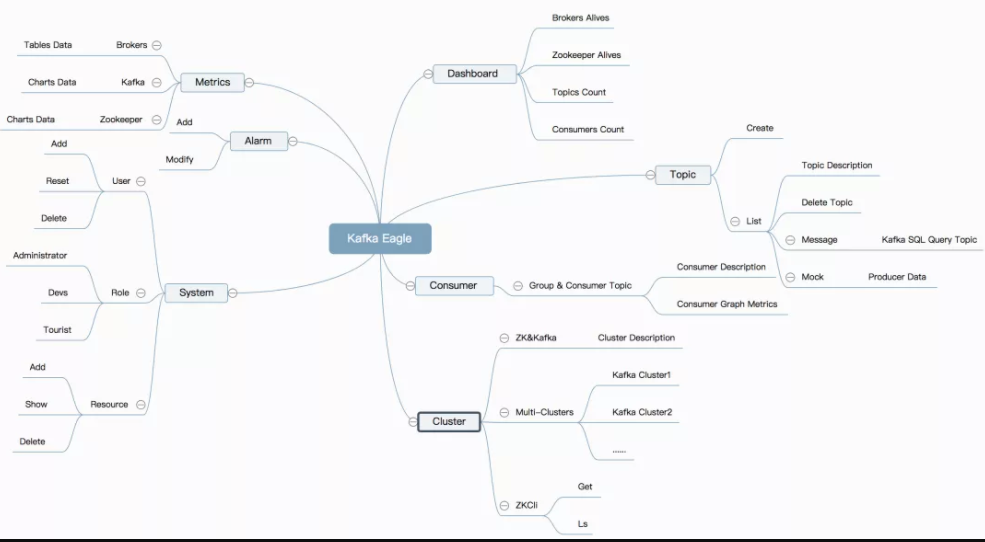 Kafka Eagle v1.2.3整个系统所包含的功能,如下图所示: