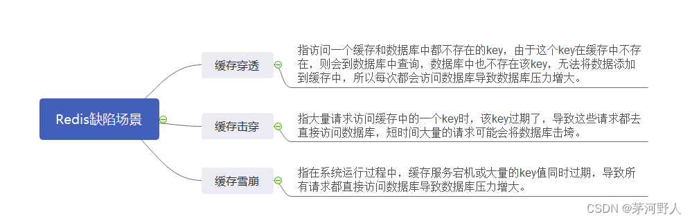 常见的redis使用缺陷场景主要有3个,分别是缓存穿透,缓存击穿,缓存雪崩。