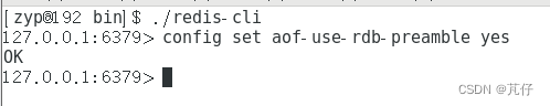 开启文件追加方式(AOF)命令为:config set appendonly yes