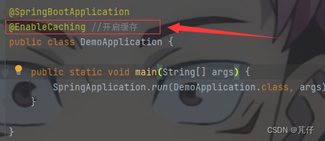 在SpringBoot启动类上添加注解,以说明开启缓存: