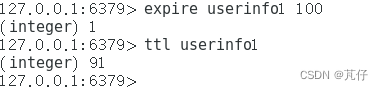 设置过期时间以及查看还有多久过期(单位:秒),这个方式可以针对多种数据类型: