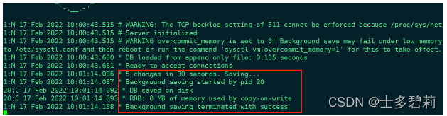 我添加了一项 SAVE 30 5 的策略,30秒内服务器发生5次数据修改,则进行一次RDB。如上图。