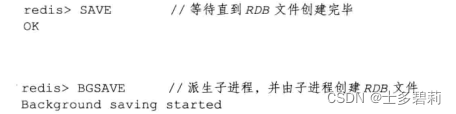 SAVE命令和BGSAVE命令都可以生成RDB文件,这两种命令以不用的方式调用 rdbSave 函数完成RDB文件的生成。