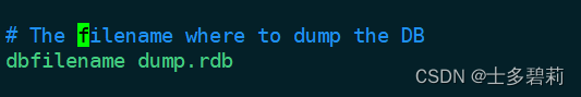 RDB文件名默认为dump.rdb,可以通过配置文件 rdbfile修改: