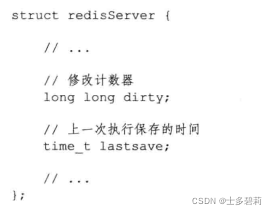除了saveparams数组外,redisServer结构还保存了一个dirty计数器和一个lastsave属性。dirty计数器记录距离上次执行SAVE或BGSAVE后,服务器修改了多少次;lastsave属性是一个unix时间戳,记录了上次成功SAVE/BGSAVE的时间。