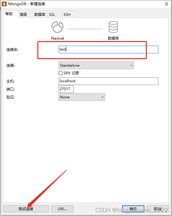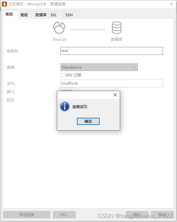 输入连接名后点击测试连接,即显示连接成功