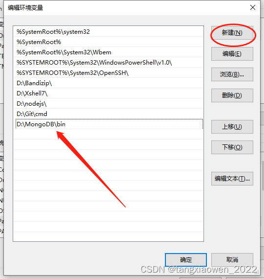 新建一个变量,值即为mongodb的安装路径下的bin文件