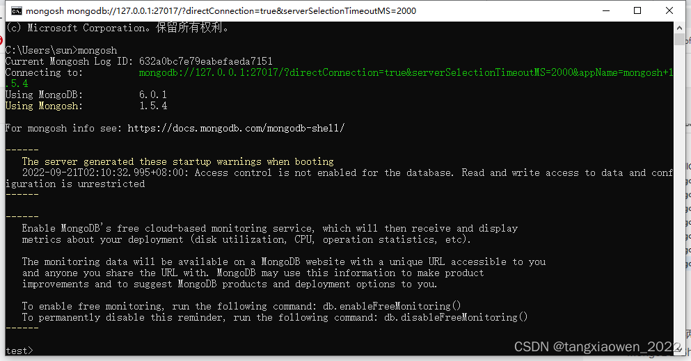 MongoDB 6.0.1版本 MongoDB server 和 MongoDB Shell 是分离的。
