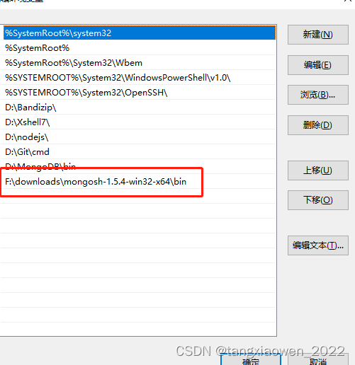 如果不想将服务和 Shell 文件捆绑在一起,那么向上述中的环境变量添加过程一样,再添加一个MongoDB Shell 下bin文件路径的环境变量即可。