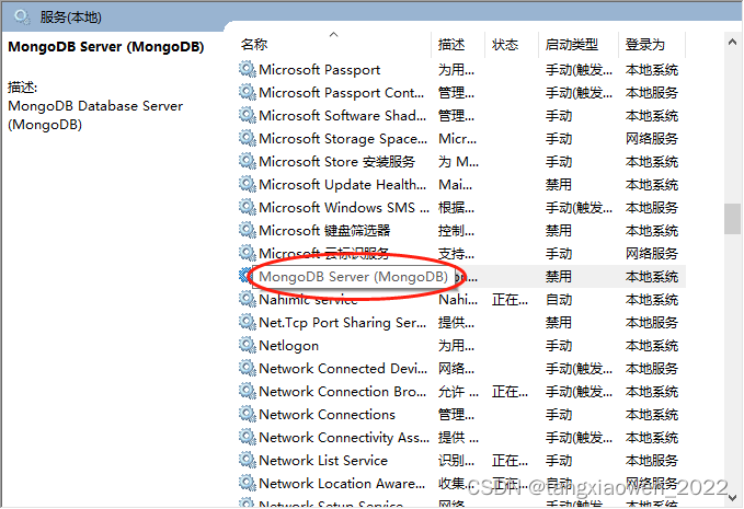 在本地服务列表里面查找MongoDB server 服务
