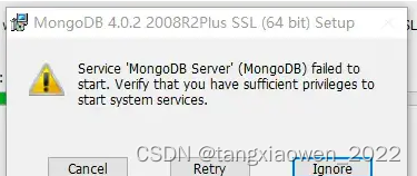 window10系统安装时出现如下报错直接选择ignore忽略即可完成安装