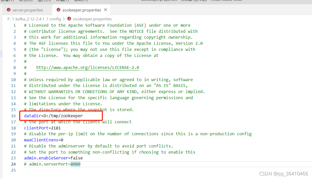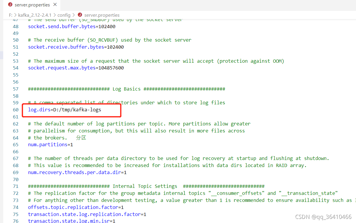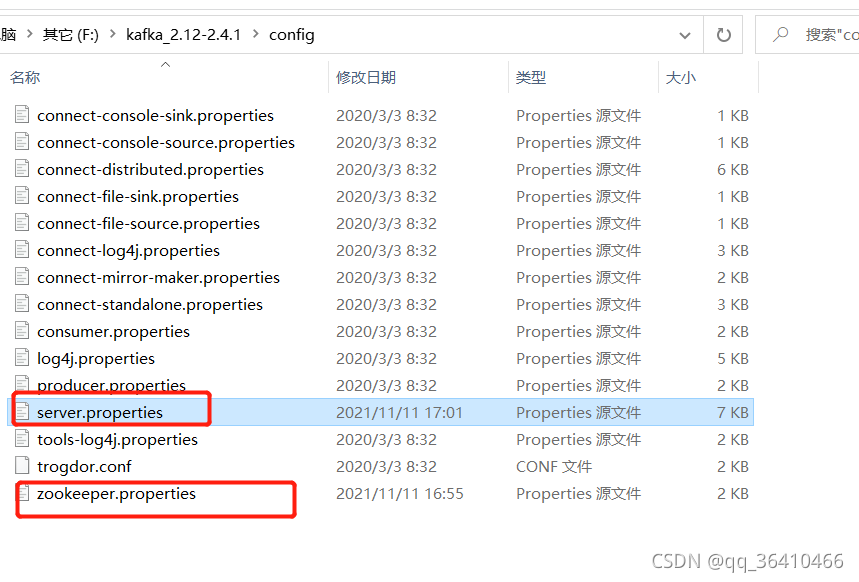 下载好kafka后修改zookeeper.properties和server.properties两个配置文件的日志生成路径