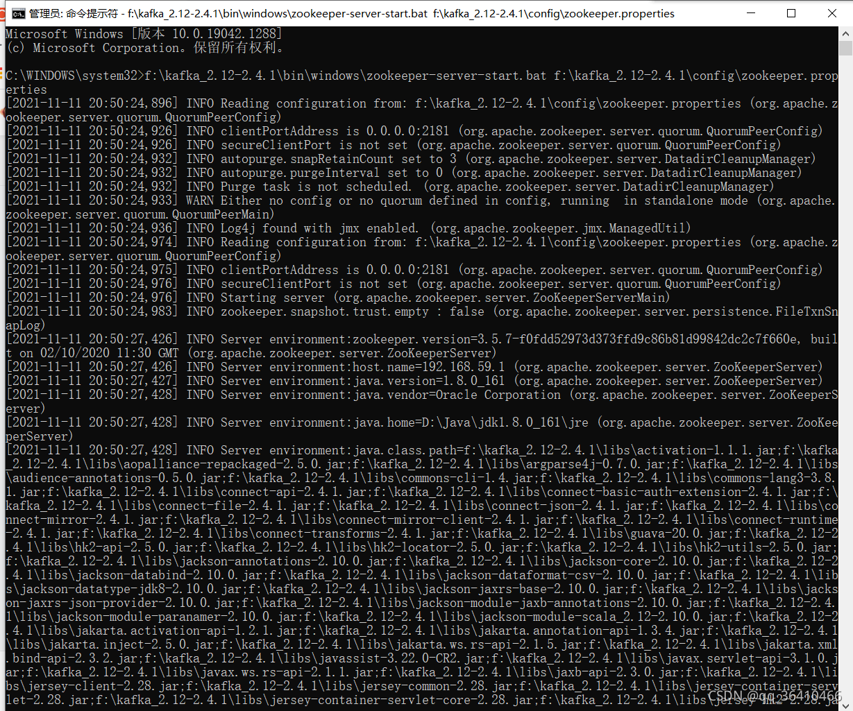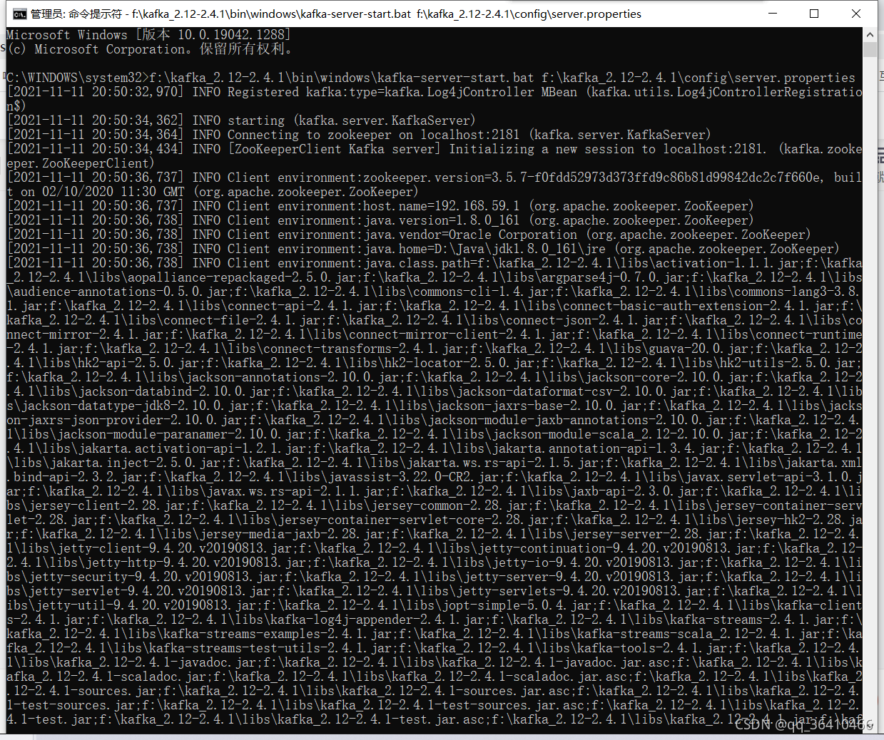 windows以管理员身份打开cmd终端执行bin下的windows下的kafka-server-start.bat和zookeeper-server-start.bat