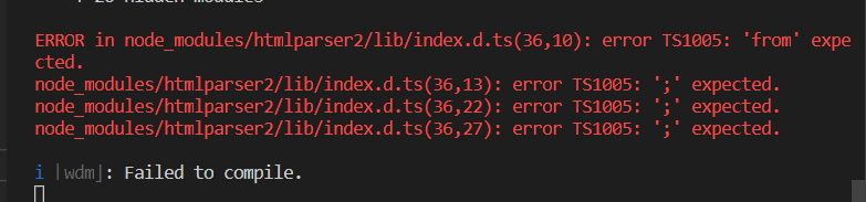 npm启动项目的时候报错ERROR in node_modules/htmlparser2/lib/index.d.ts(36,10): error TS1005: ‘from‘ expected.