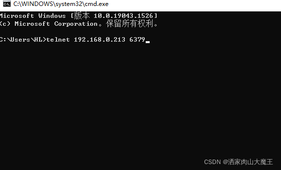 7.在外面的电脑上,cmd--->telnet 192.168.0.213 6379 注意空格,如果出现一个黑屏就表示外网可以访问redis的服务器