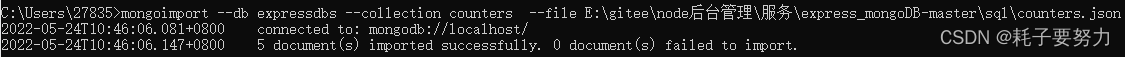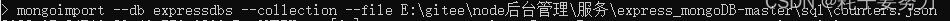 mongoimport --db expressdbs(换成你自己的) --collection counters(换成你自己的) --file E:\gitee\node后台管理\服务\express_mongoDB-master\sql\counters.json