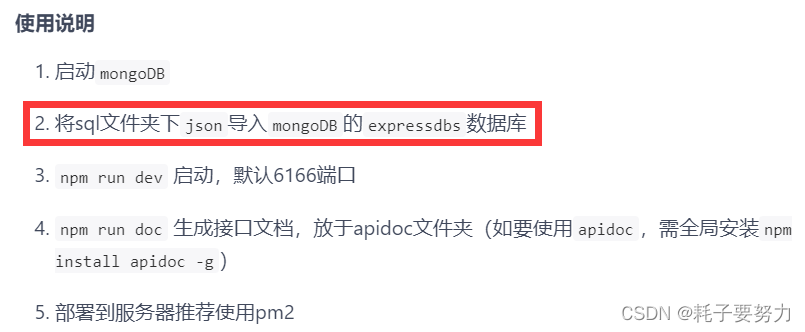 从 gitee 上拉下来个用node写的后台管理项目,后端是express+mongodb写的,准备跑起来看看,然后找到使用说明,看到第二步