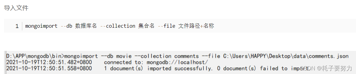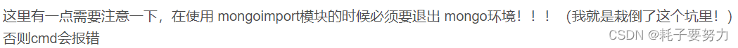 我赶紧照葫芦画瓢把命令打上去(注意:可以不用新建好数据库再导入,不存在时会帮你创建的,集合也是)