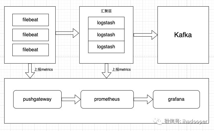 监控告警: 获取filebeat,logstash metrics并解析成prom格式上报给prometheus, 通过grafana展示,提供实例级别的监控,对收集延迟,失败及时告警, 对收集的日志count进行统计,方便对数。