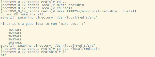 这样我们就重新把bin下的执行目录安装到了自己想要的/usr/local/redisbin目录下面了,如图所示