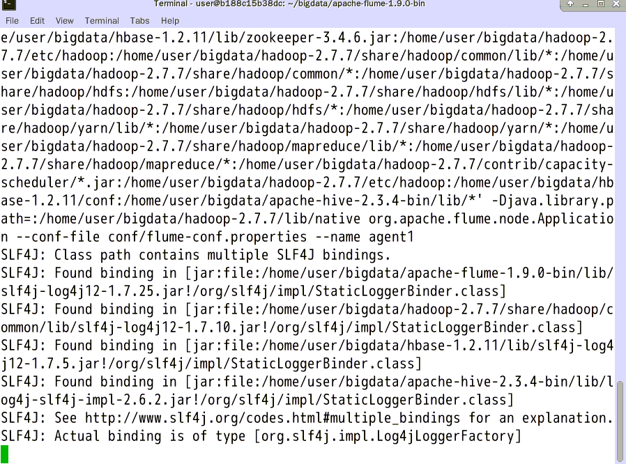 输入cd /home/user/bigdata/apache-flume-1.9.0-bin