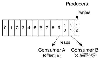 实际上,基于每个消费者保留的唯一元数据是该消费者在日志中的偏移或位置。这种偏移由消费者控制:通常消费者在读取记录时会线性地提高其偏移量,但事实上,由于该位置由消费者控制,因此它可以按照自己喜欢的任何顺序消费记录。例如,消费者可以重置为较旧的偏移量来重新处理过去的数据,或者跳到最近的记录并从“现在”开始消费。
