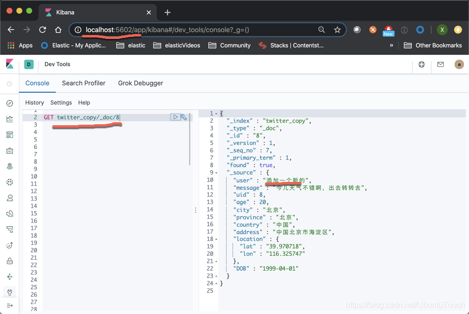 {"user":"老贾","message":"123,gogogo","uid":5,"age":30,"city":"北京","province":"北京","country":"中国","address":"中国北京市朝阳区建国门","location":{"lat":"39.718256","lon":"116.367910"}, "DOB": "1989-04-01"}