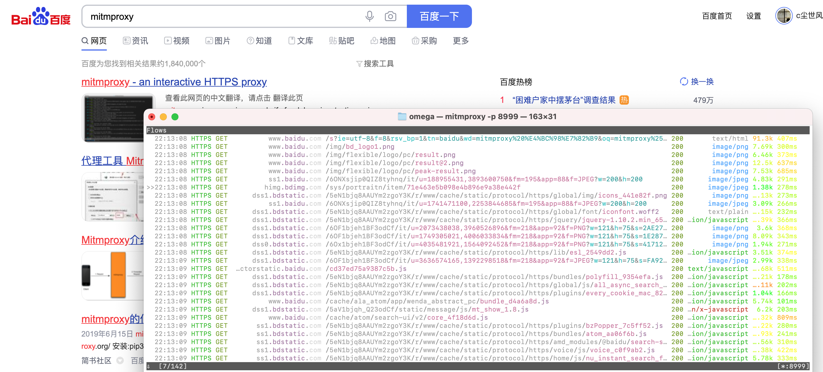 打开百度搜索,依次搜索mitmproxy、mitmweb、mitmdump,然后结束录制。录制结束后,会在当前目录下生成二进制录制文件baudu.txt