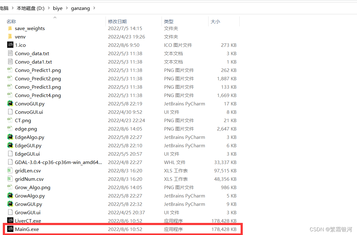 在终端输入生成.exe文件以及修改图标的命令:pyinstaller -F -w -i D:\biye\ganzang\1.ico MainG.py