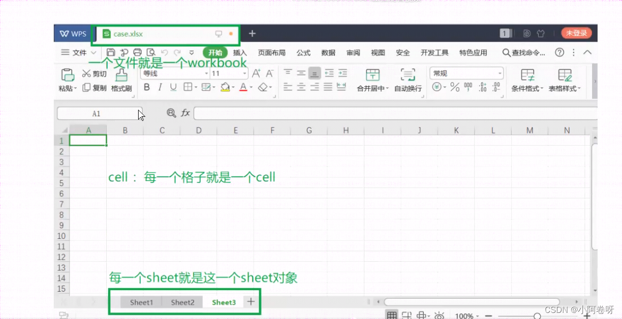 三、使用openpyxl,要先了解excel三大对象: