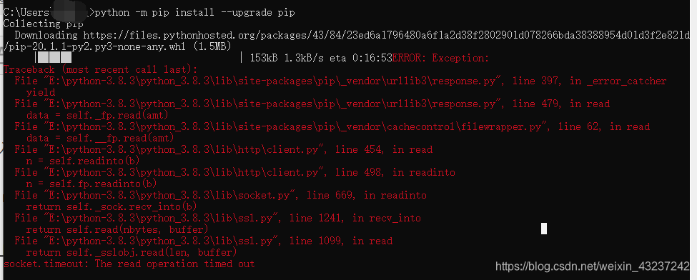 pip 升级失败问题 及 安装模块失败问题